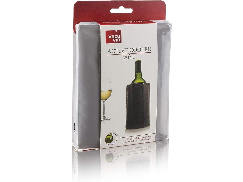 Vacu Vin Active Cooler Wine aktívne chladí vašu obľúbenú fľašu vína a udržiava ju chladnú a osviežujúcu. Izolovaný obal chladiča udržiava fľašu pri ideálnej teplote na servírovanie až do posledného dúšku. Na optimálne použitie uchovávajte opakovane použiteľné puzdro v mrazničke aspoň 6 hodín.